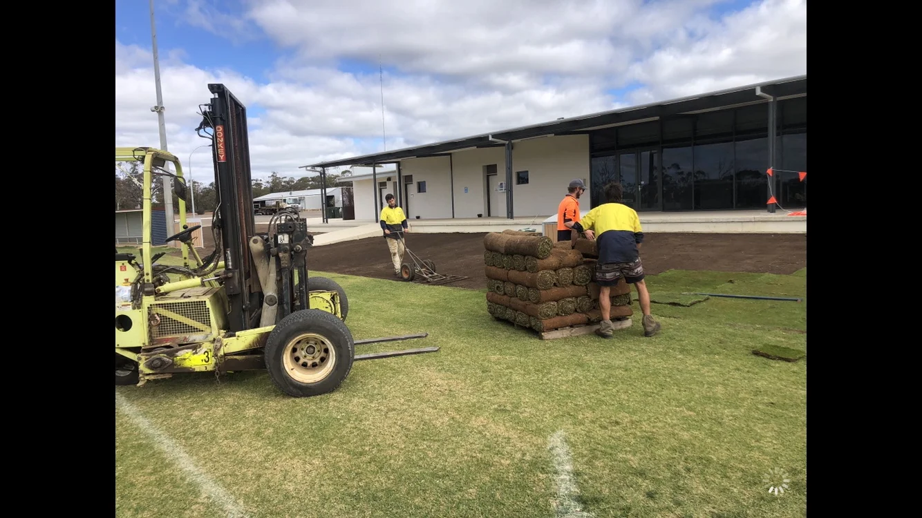 After major works were completed on sewage pipes at Miles Park West Coast Turf supplied 20m3 of USGA rated lawn sand from Carramar Resources to create a level free draining surface, then Supplied and installed 1200m2 of Jumbo roll “Zulu Kikuyu”.